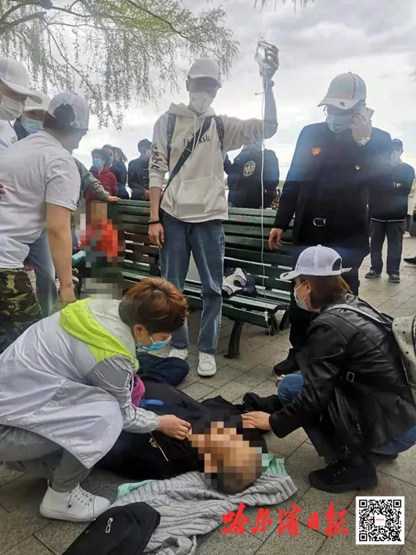 “那邊有個人暈倒了,我們已經(jīng)打120急救電話了,但他仍需要幫助……”10日14時,一位路人攔住了哈爾濱市第二醫(yī)院護(hù)士節(jié)徒步活動方隊求助。