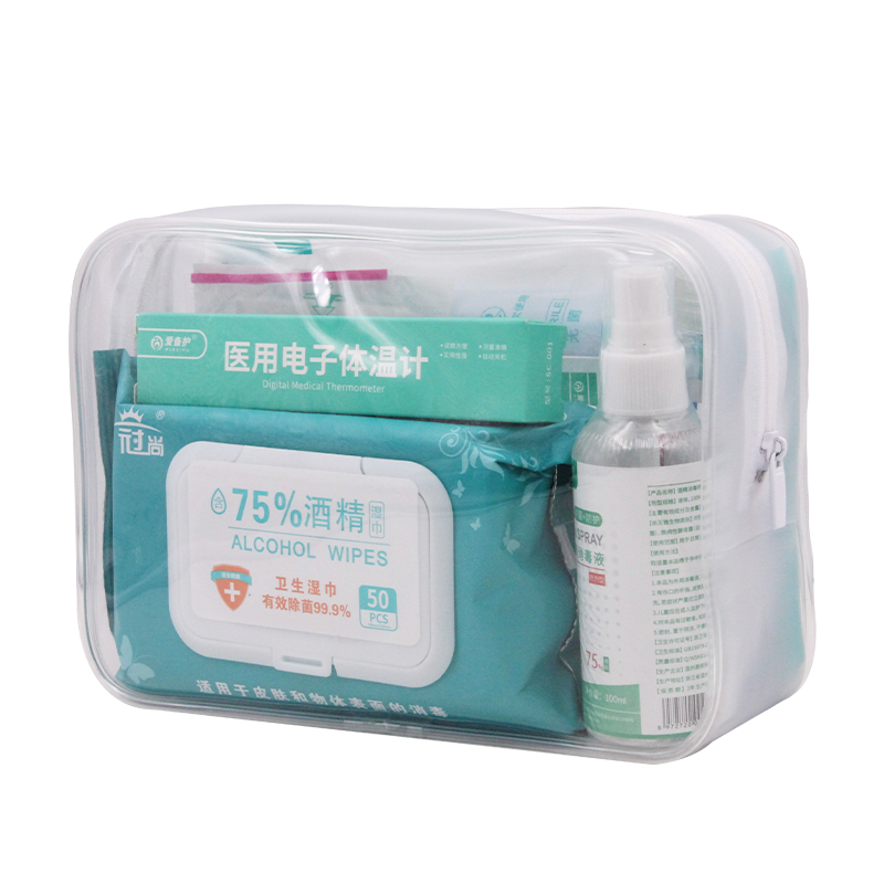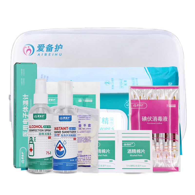 75%酒精濕巾、免洗手消毒凝膠、酒精消毒噴霧、一次性使用醫(yī)用橡膠檢查手套 電子體溫計(jì)、碘伏消毒液(棉棒)、酒精棉片、防水創(chuàng)可貼 |