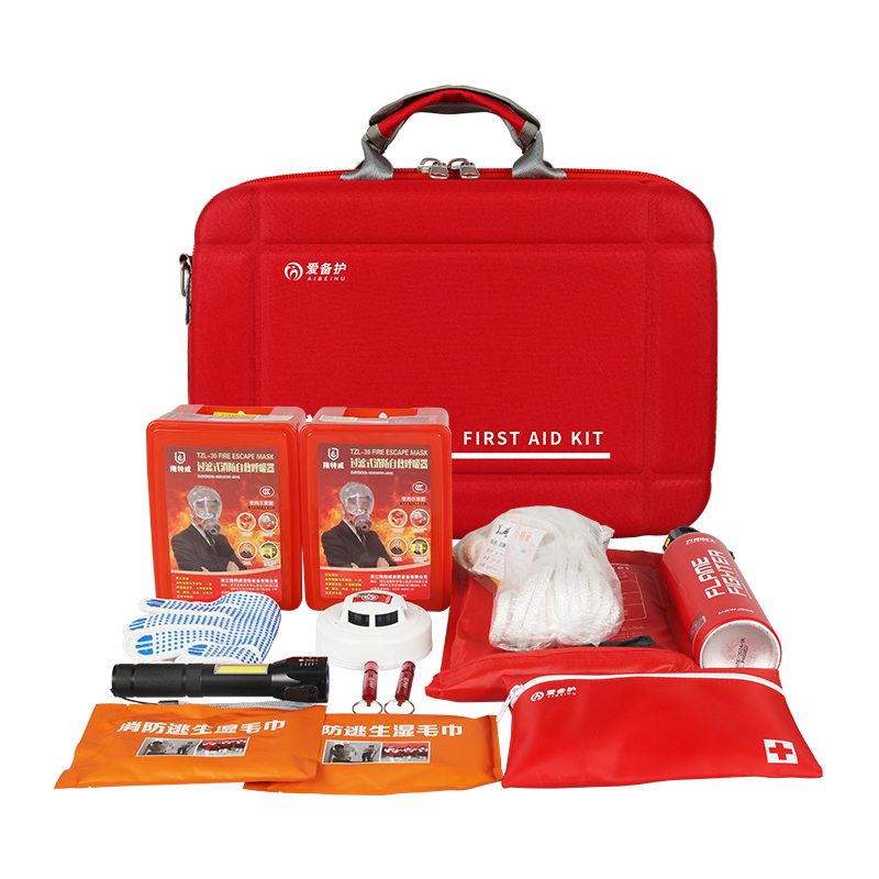 過濾式消防自救呼吸器、獨立式煙霧報警器、滅火毯、滅火器、消防濕毛巾、多功能應急強光手電筒、應急逃生繩(含搭扣)、高頻救生哨、防滑耐磨手套 |