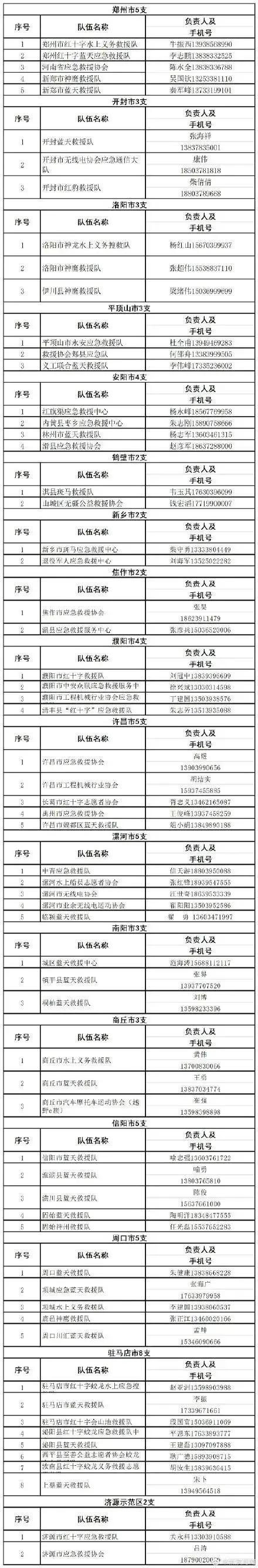 以下是河南救援信息: